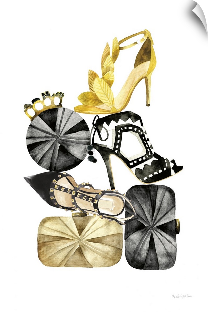 Art Art by Decor Style Glam Mercedes Lopez Charro Decorative Art Fashion And Beauty Purses and Bags Shoes Painting