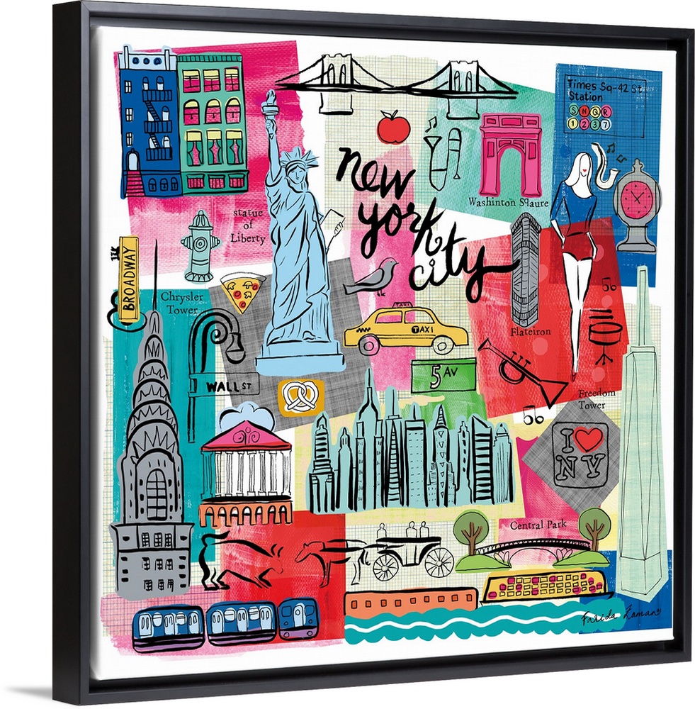 Art Decorative Art Art Maps Painting New York City Statue of Liberty Farida Zaman