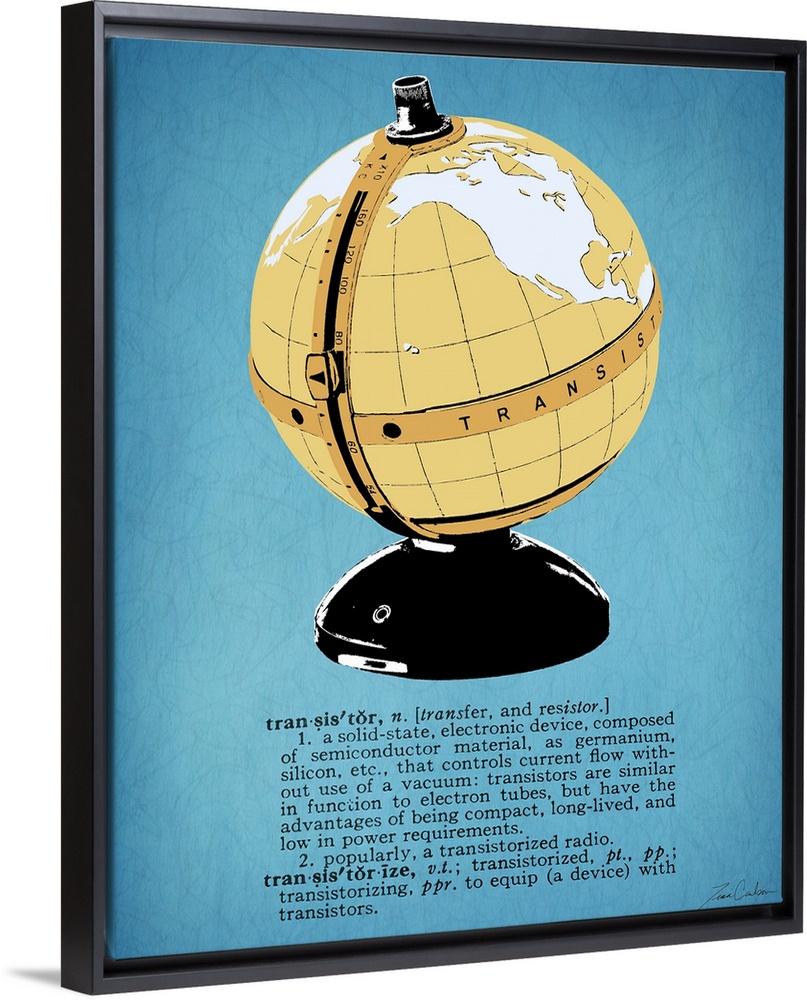 <p>Retro-style illustration of a globe radio with the dictionary definition below the image.</p>
