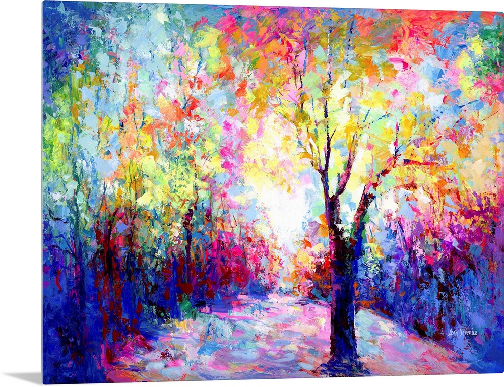 <p>Contemporary painting of a path leading through an enchanting landscape forest.</p>
