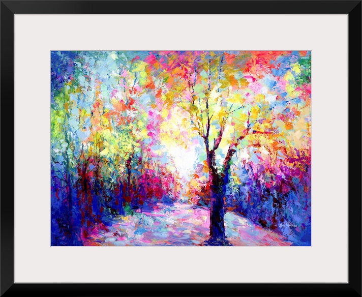 <p>Contemporary painting of a path leading through an enchanting landscape forest.</p>