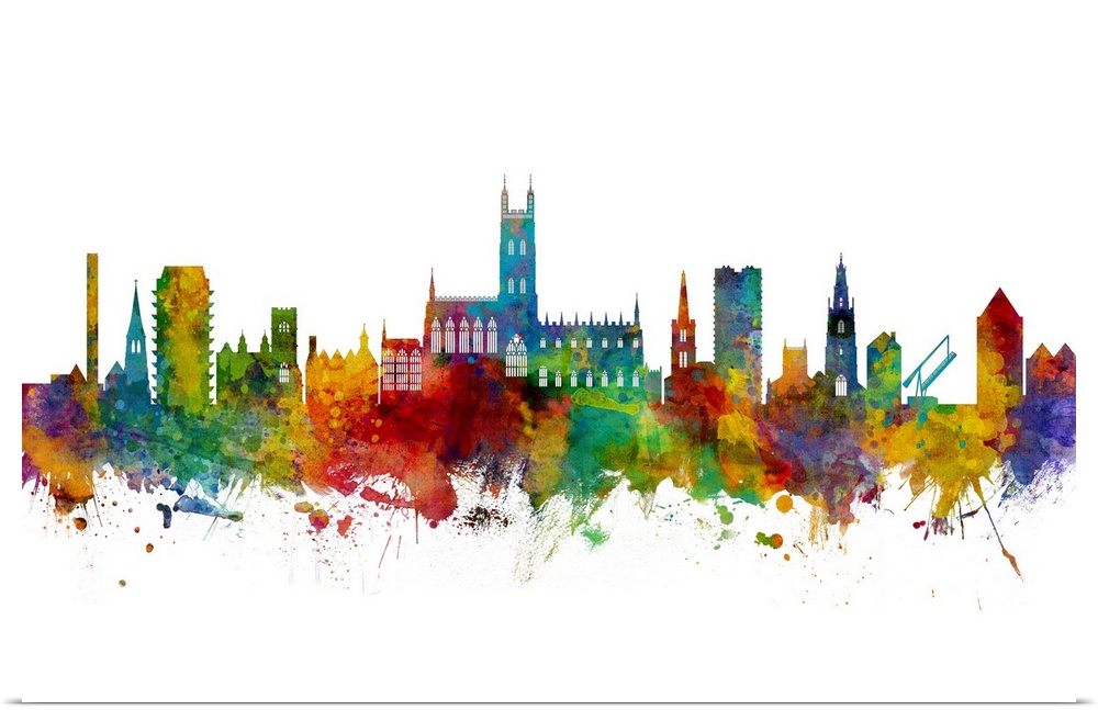 <p>Watercolor art print of the skyline of Gloucester, England, United Kingdom.</p>
