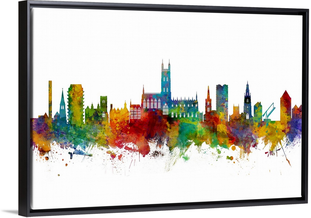<p>Watercolor art print of the skyline of Gloucester, England, United Kingdom.</p>