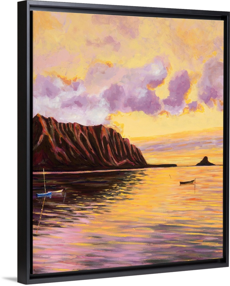 <p>Glowing Kualoa (Diptych 2 Of 2), Hawaii, Oahu, Kualoa Point Right Side And Reflections At Sunset (Acrylic Painting) - Diptych Series.</p>