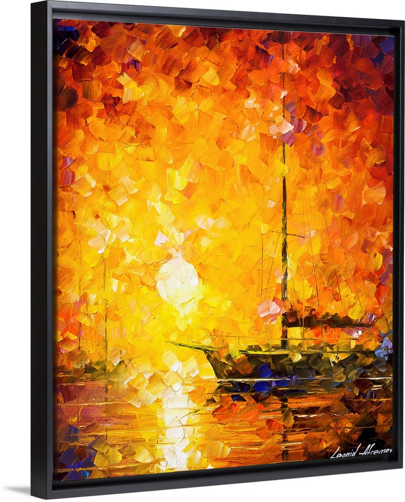 Leonid Afremov Art Impressionism Contemporary Art Painting Transportation Boat Sailboat Yellow Wall Art