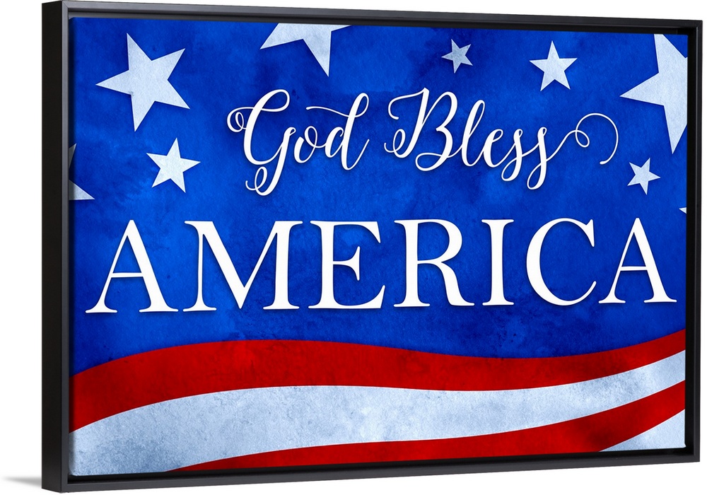 <p>"God Bless America" written in white on a red, white, and blue patriotic background.</p>