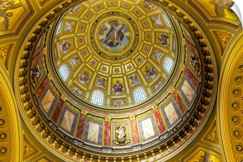 <p>Dome God Christ Basilica Arch Saint Stephens Cathedral Budapest Hungary. Saint Stephens named after King Stephens who brought Christianity to Hungary. Cathedral built in the 1800s and consecrated in 1905.</p>