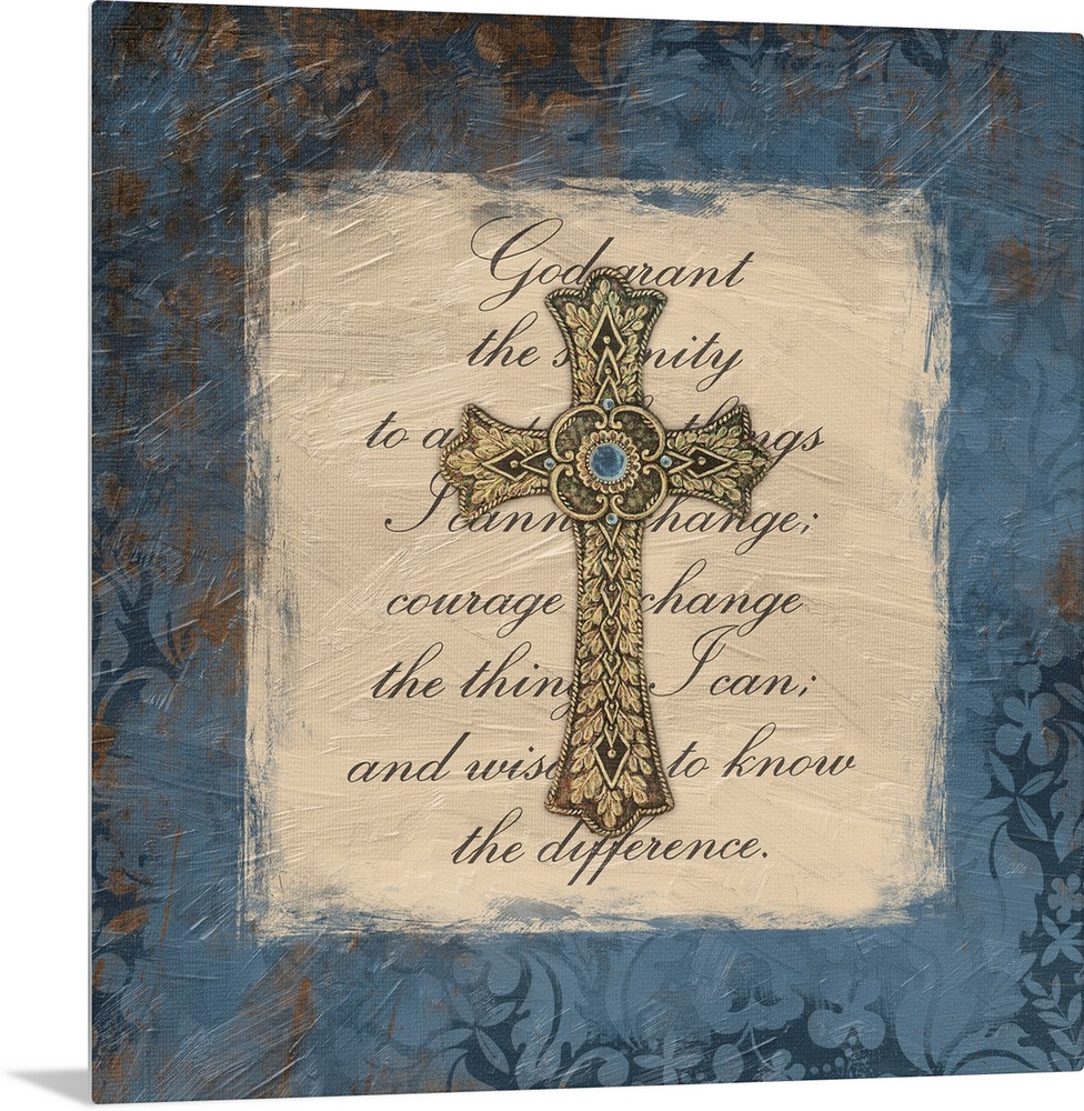 Art Blue Wall Art Cross Decorative Art Jace Grey Religious Art Scripture Art