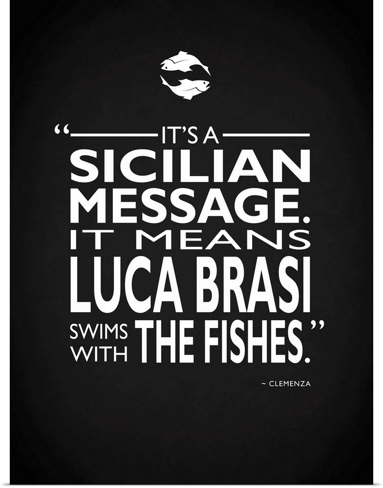 <p>"It's a Sicilian Message. It means Luca Brasi swims with the fishes." -Clemenza</p>