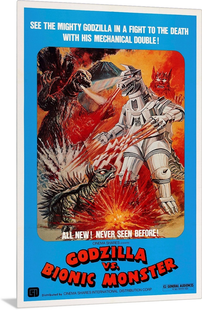 <p>Godzilla Vs. Mechagodzilla, (AKA Godzilla Vs. Bionic Monster, AKA Gojira Tai Mekagojira, Godzilla Vs. Cosmic Monster), US Poster Art, Godzilla, Bionic Monster, 1974.</p>