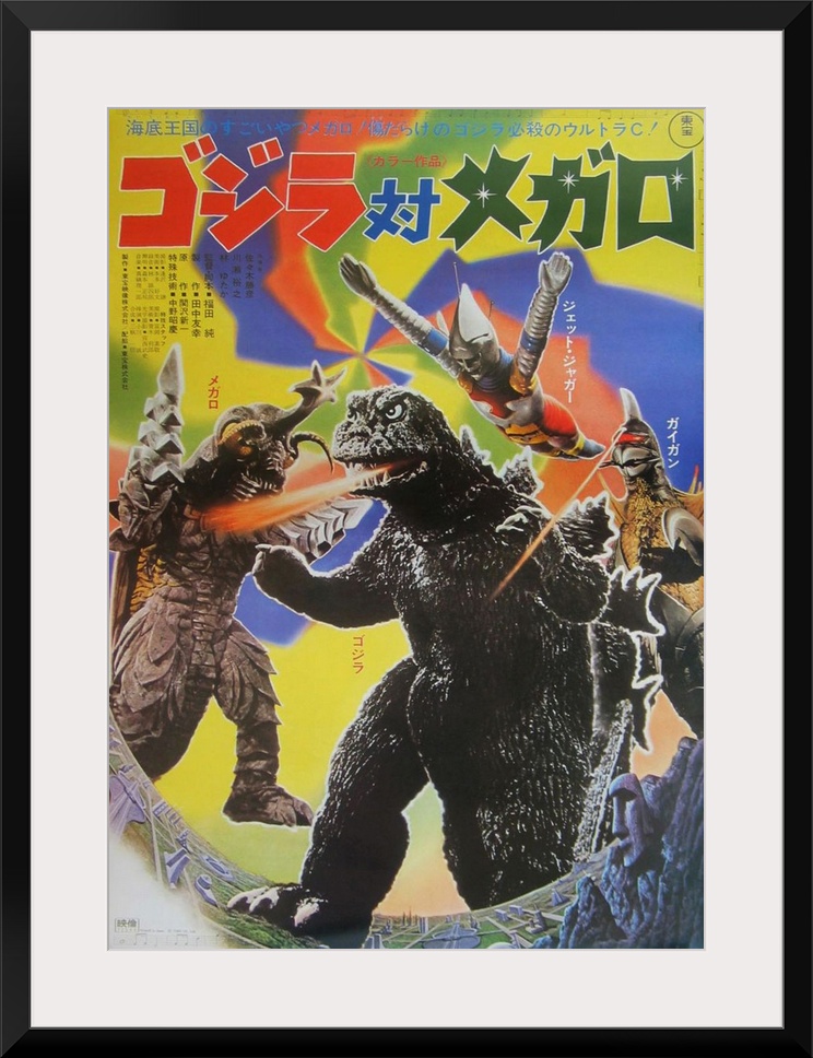 <p>Godzilla's creators show their gratitude to misguided but faithful American audiences by transforming the giant monster into a good guy. This time, the world is threatened by Megalon, the giant cockroach, and Gigan, a flying metal creature, simultaneously. Fortuneately, the slippery hero's robot pal Jet Jaguar is on hand to slug it out side by side with Tokyo's ultimate defender.</p>