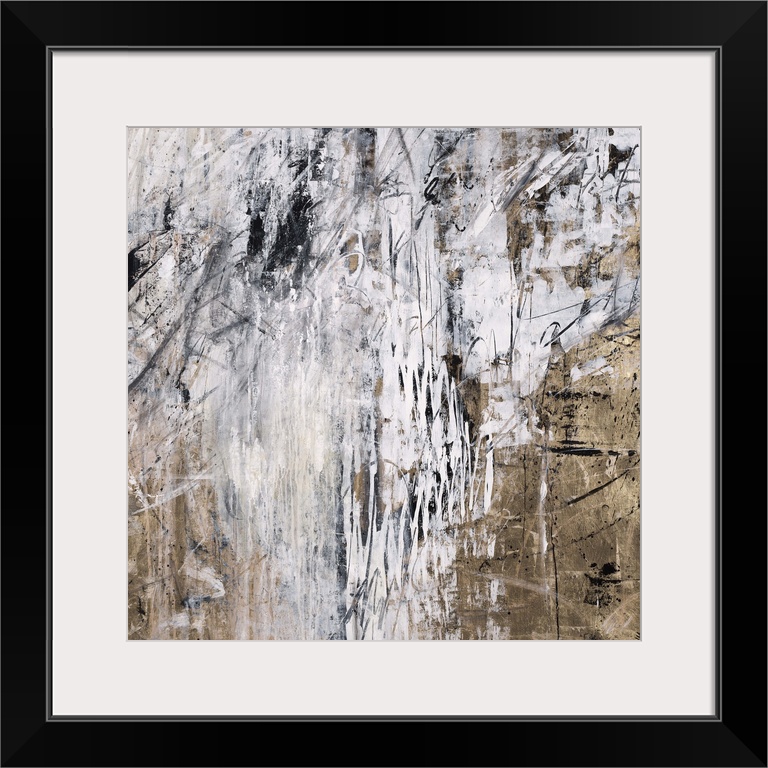 <p>Abstract painting using washed out light colors dripping over earth textured looking earth tones.</p>