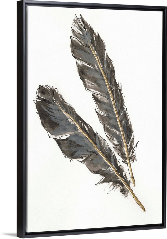 <p>Painting of two black feathers with gold in the center.</p>