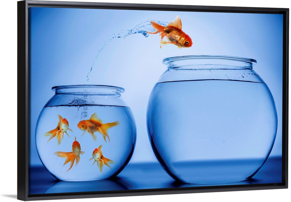 <p>Gold Fish jumping from one fish bowl to another.</p>