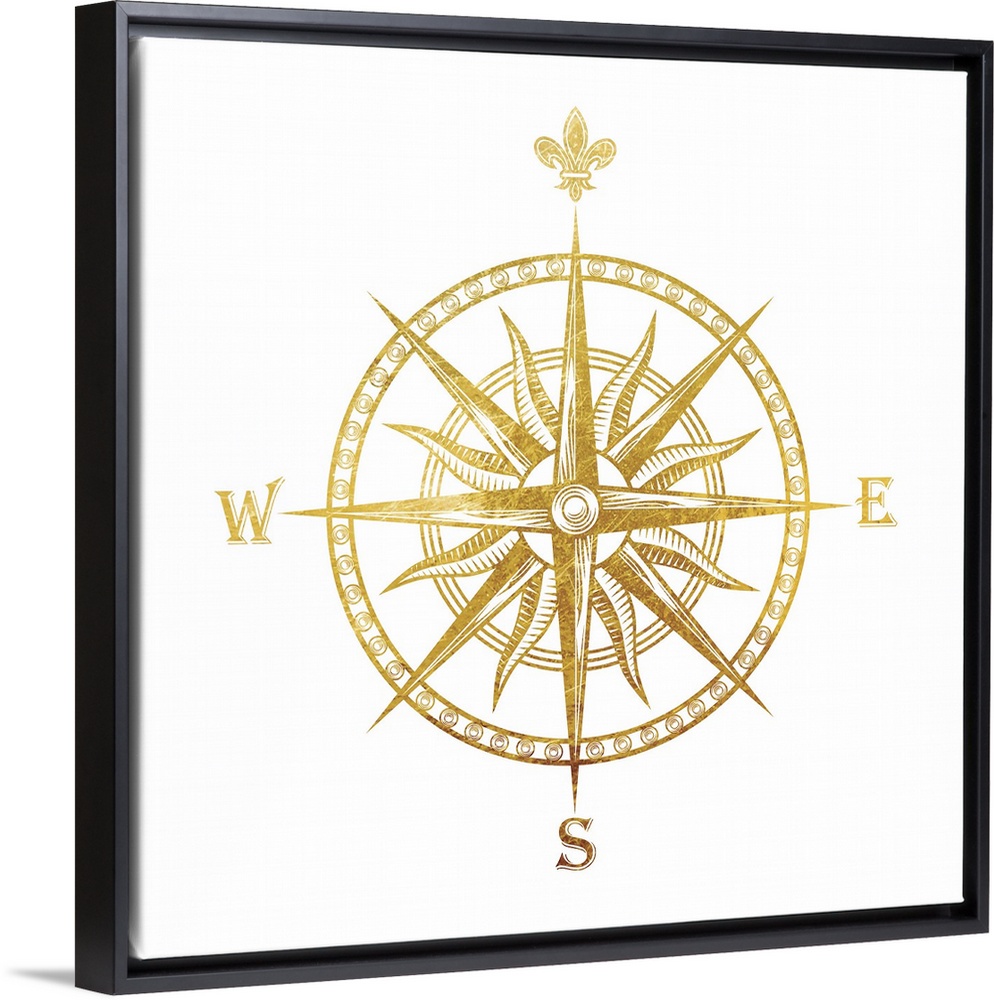 <p>Gold foil compass with the fleur de lis used for the "N"on a white background.</p>
