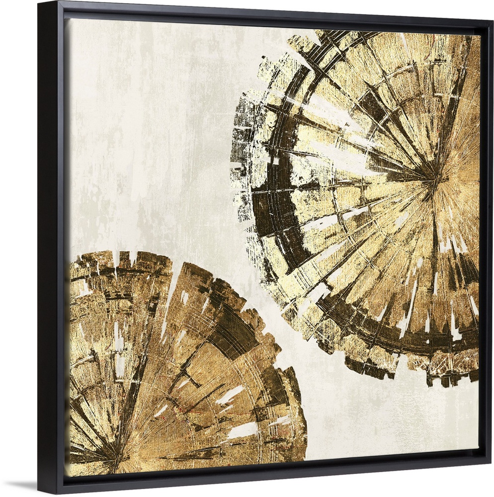 <p>Abstract artwork of circular forms resembling tree rings in gold.</p>