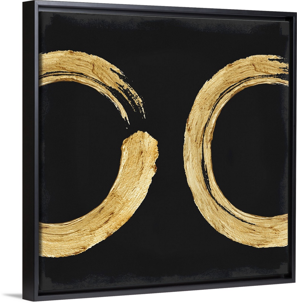 <p>This Zen artwork features two sweeping circular brush strokes in gold over a black background with mottled gray edging.</p>