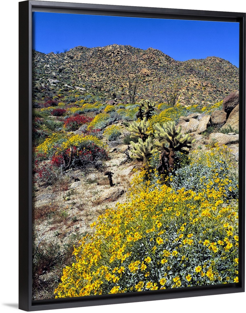 <p>USA, California, Anza-Borrego Desert State Park. Golden brittlebrush grows in the arid soil of Anza-Borrego Desert State Park, California.</p>