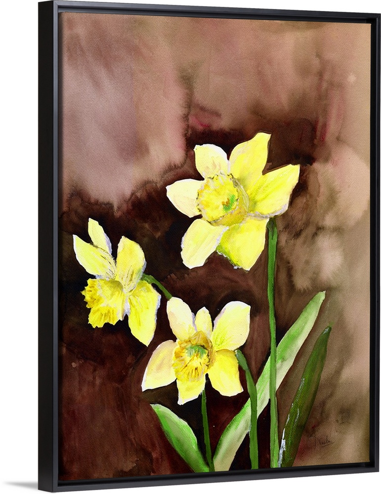 <p>Contemporary watercolor painting of bright yellow daffodils.</p>