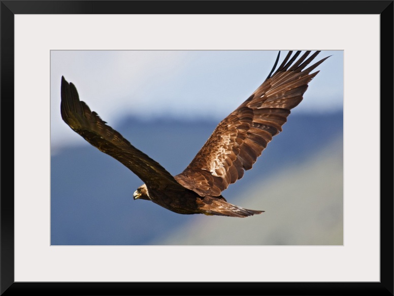 <p>Golden Eagle (Aquila chryseatos) adult in flight, an endangered species of raptor</p>