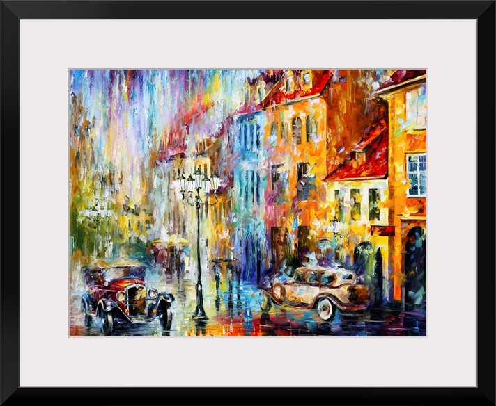 Leonid Afremov Art Cityscapes Impressionism Contemporary Art Rain Multicolor Wall Art Painting Car Classic and Vintage Cars