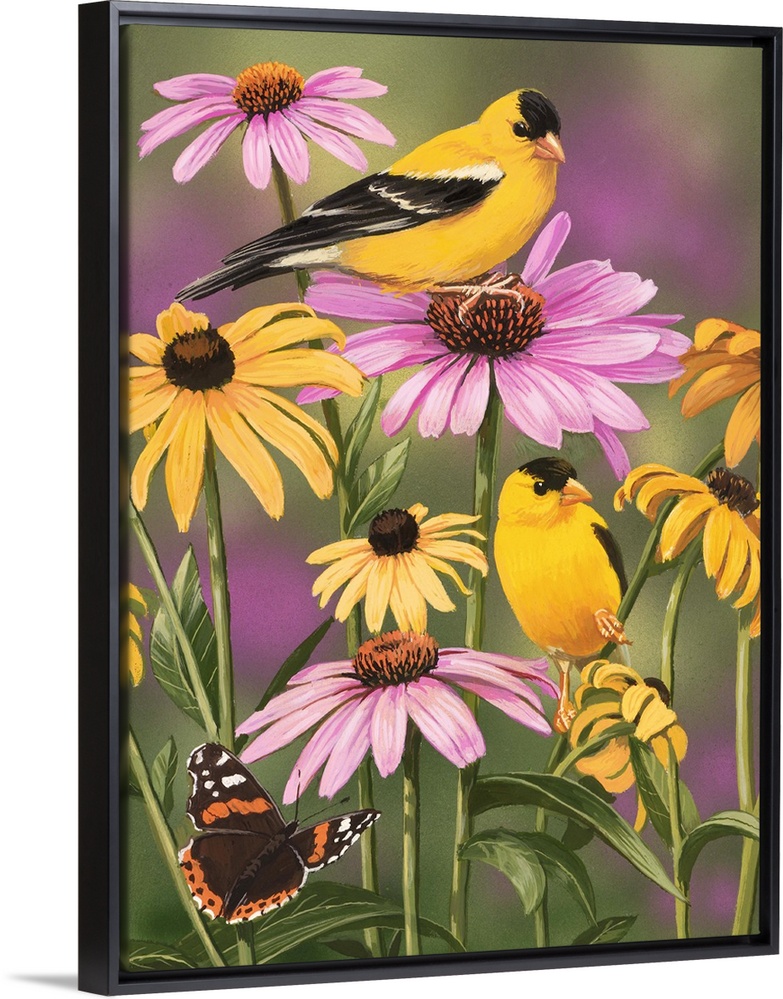 Art Contemporary Art Plants and Flowers Wildlife Florals Painting William Vanderdasson Wildlife Bird Garden Birds Yellow Wall Art
