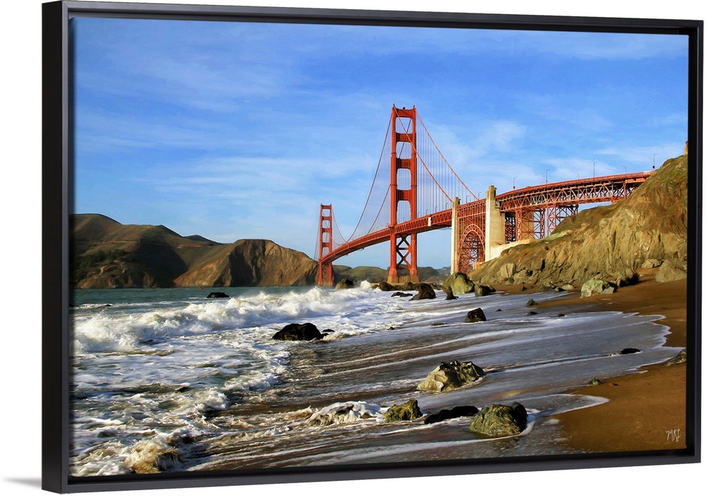 <p>A walk toward the Golden Gate Bridge on Marshall Beach, part of the San Francisco coastline. Across the bridge are the Marin Headlands. Acclaimed artist Michael Lynberg adds an impressionistic touch to his work, making each piece unique and alluring.</p>