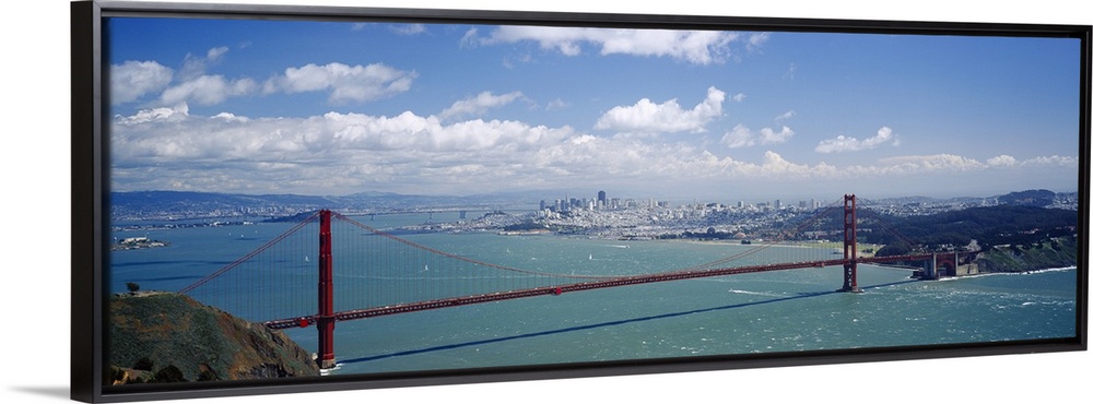 <p>The Golden Gate bridge from a distance on a sunny day in San Francisco, California.</p>