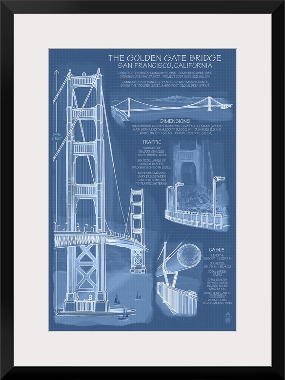 Art Blueprints Lantern Press San Francisco Golden Gate Bridge