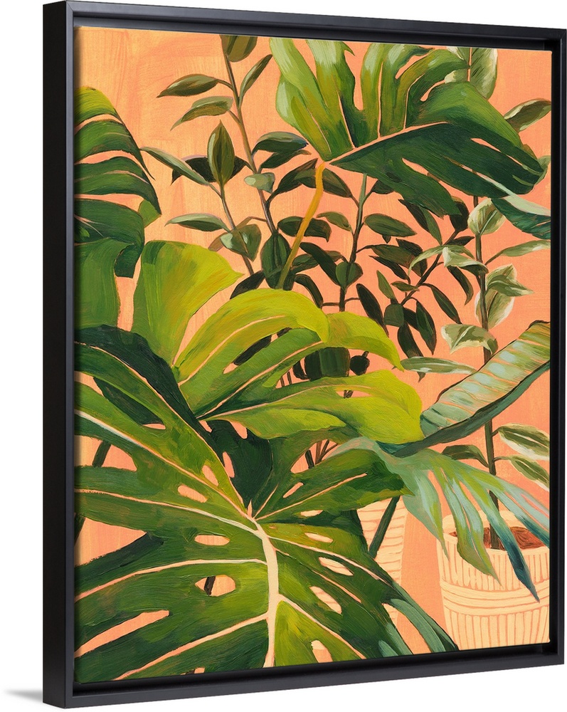Art Bohemian Living Room Art Boho Living Room Decorative Art Florals Leaves Monstera Orange Wall Art Painting Peach Fuzz Grace Popp