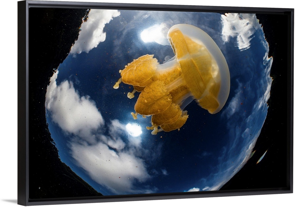 <p>Golden jellyfish and clouds in Jellyfish Lake, Palau.</p>