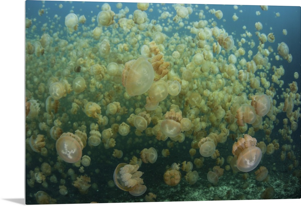 <p>Golden jellyfish swim inside a lake in the Republic of Palau.</p>