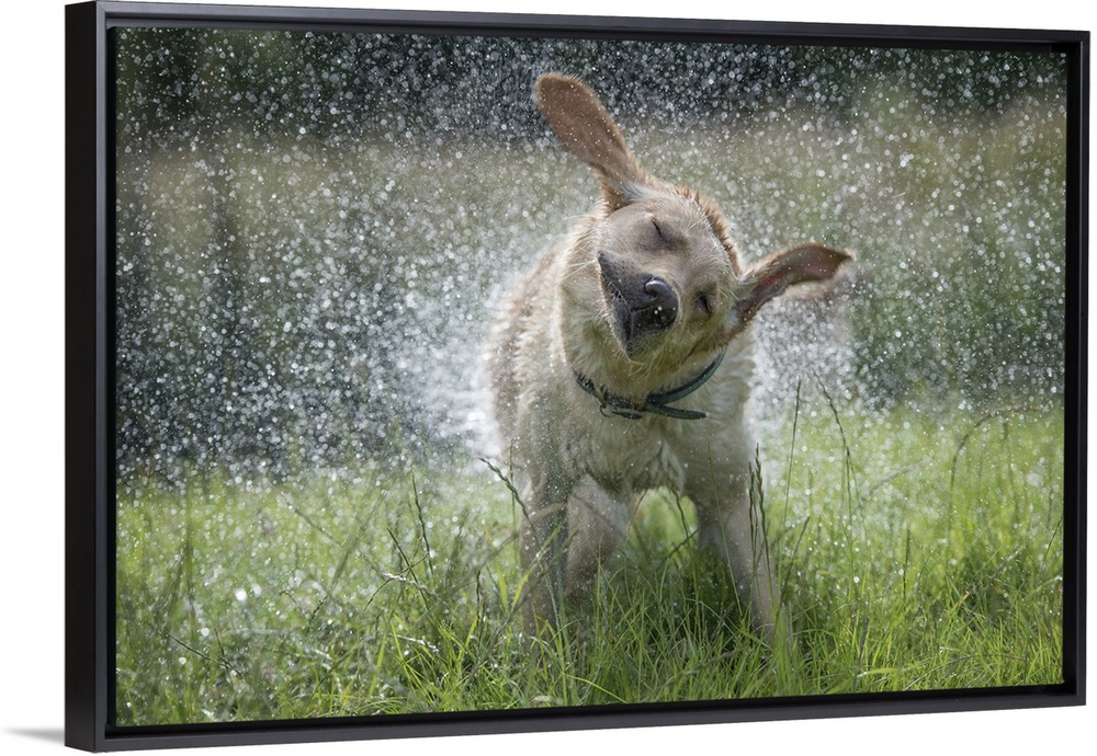 <p>Golden Labrador shaking off water, United Kingdom, Europe</p>