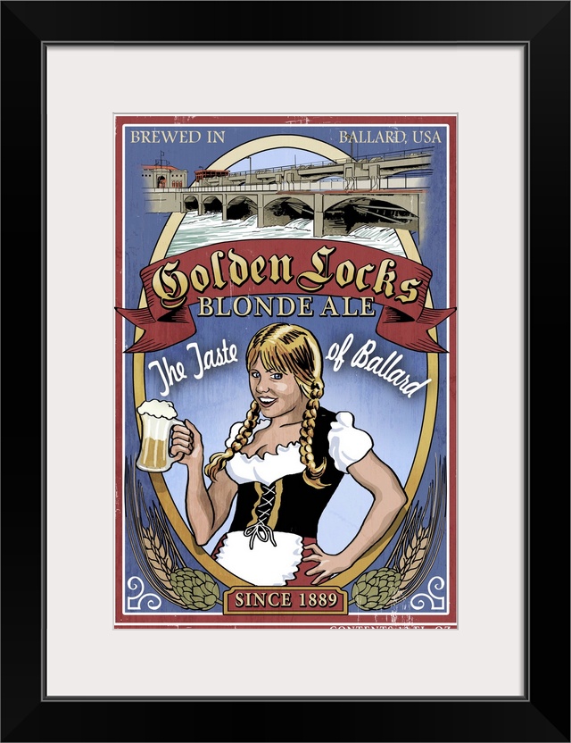 <p>Retro stylized art poster of a vintage sign of a beer maiden, holding up a mug of beer.</p>