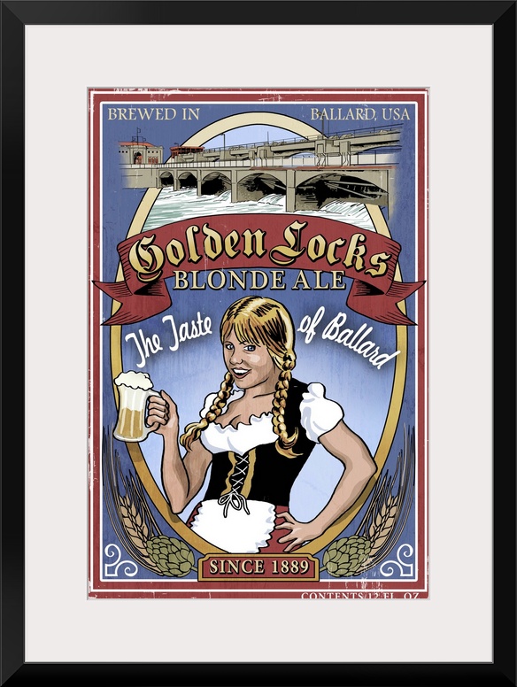 <p>Retro stylized art poster of a vintage sign of a beer maiden, holding up a mug of beer.</p>