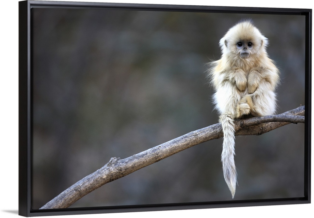 <p>Golden monkey / Rhinopithecus roxellana jeune Winter Qinling mountains CHINA</p>