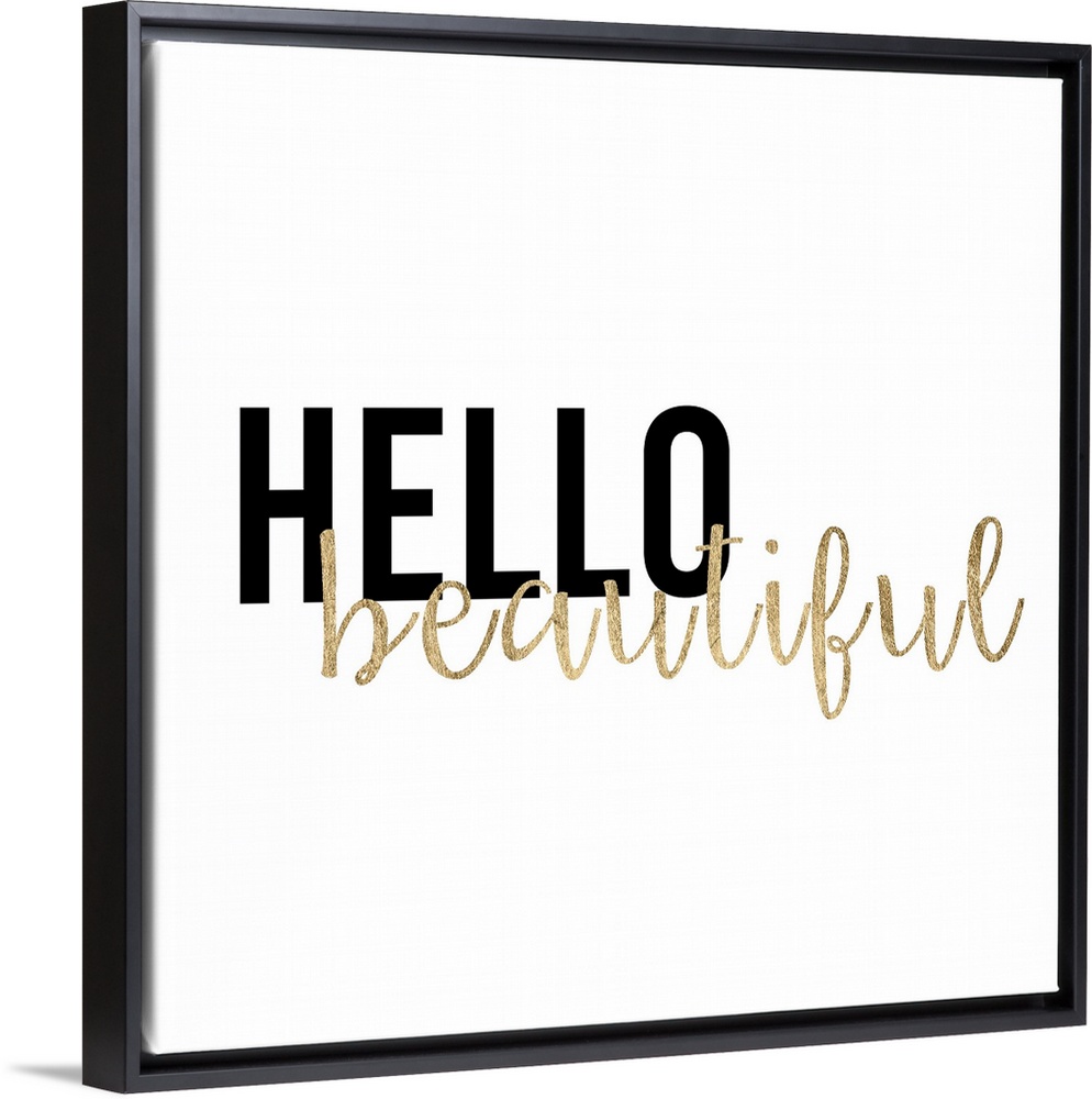 <p>"Hello beautiful" in black and gold text on white.</p>
