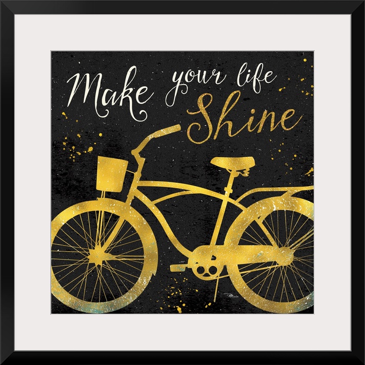 <p>Silhouette of a bicycle in gold with "Make your life shine" above it.</p>