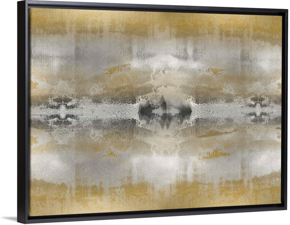 <p>Large abstract art in metallic silver, dark gray, and gold.</p>