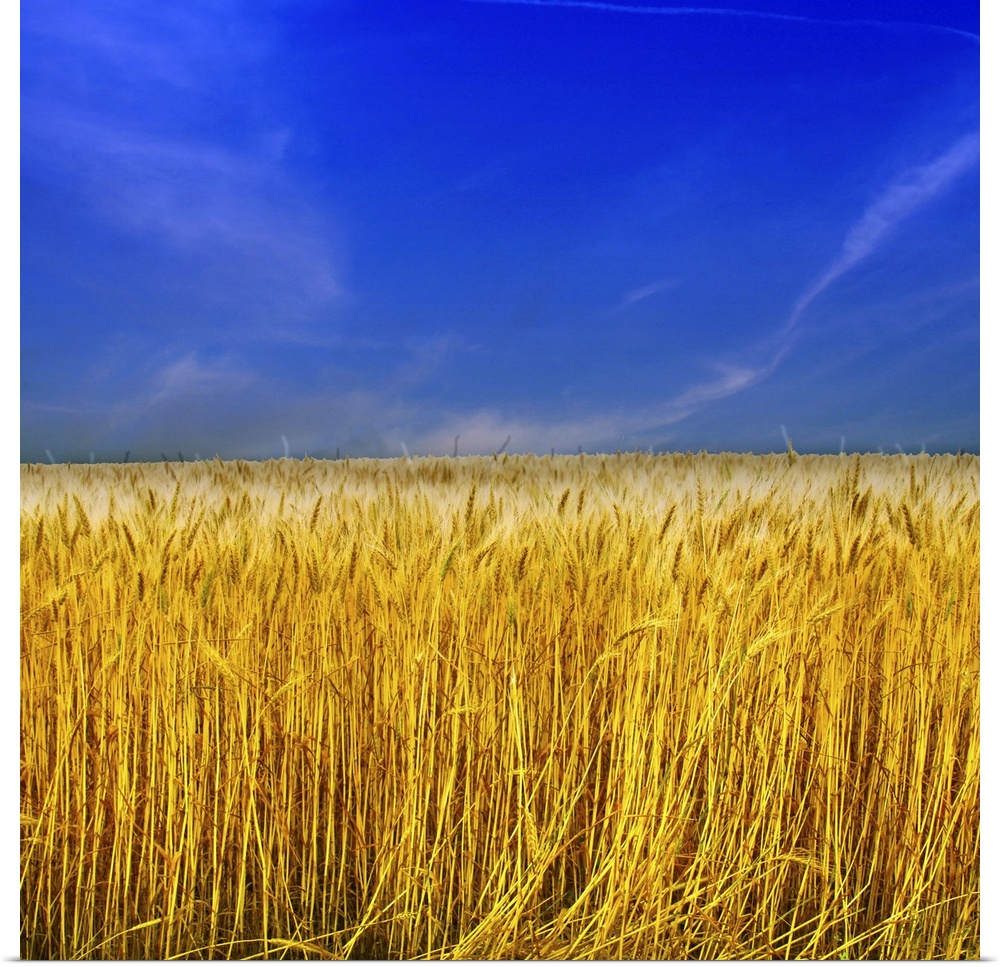 <p>Golden Wheat field against blue sky.</p>