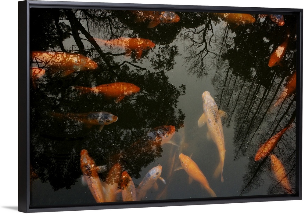 <p>gold fish, carp, swimming, orange, reflection</p>