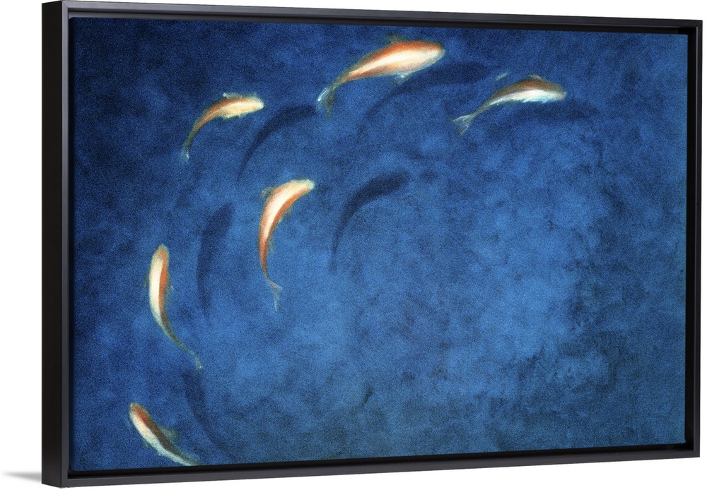 <p>Artwork of fish swimming in a pond in a circular pattern.</p>