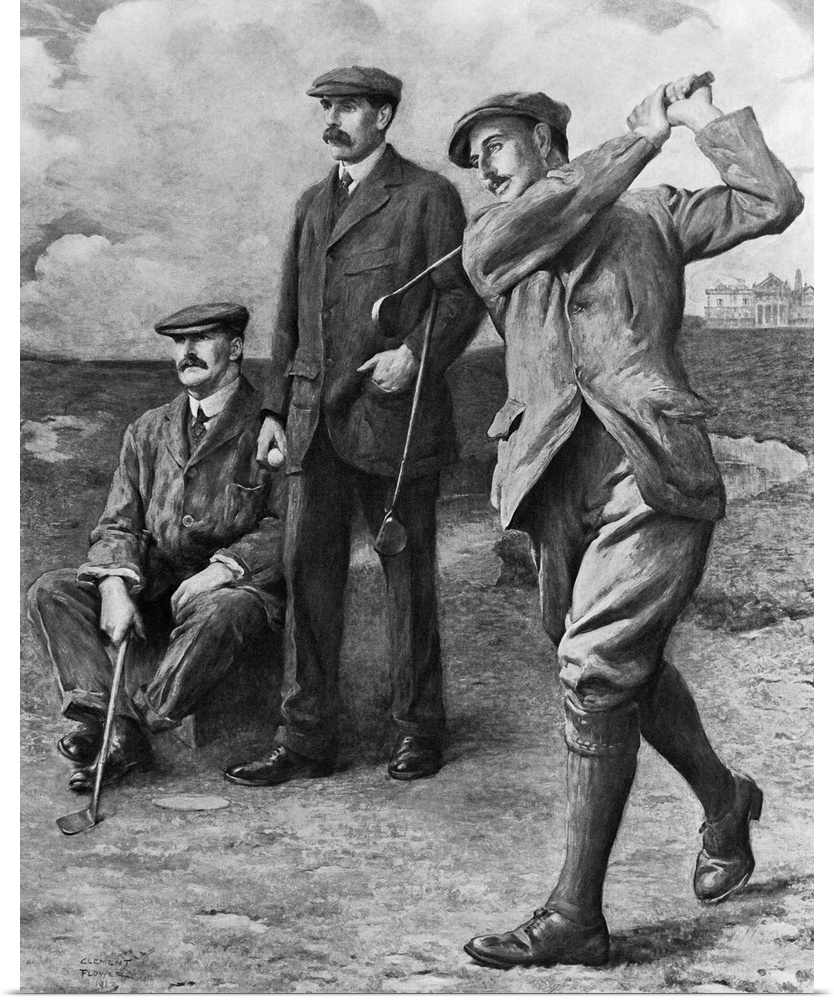 <p>Golf's big triumvirate: J.H. Taylor, James Baid, Harry Vardon. Painting, 1913.</p>