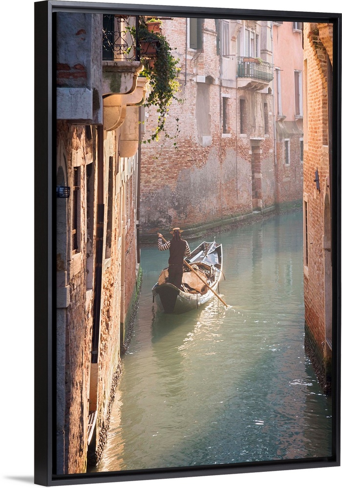 <p>Gondola And Gondolier In A Small Venetian Canal, Venice, Veneto, Italy</p>