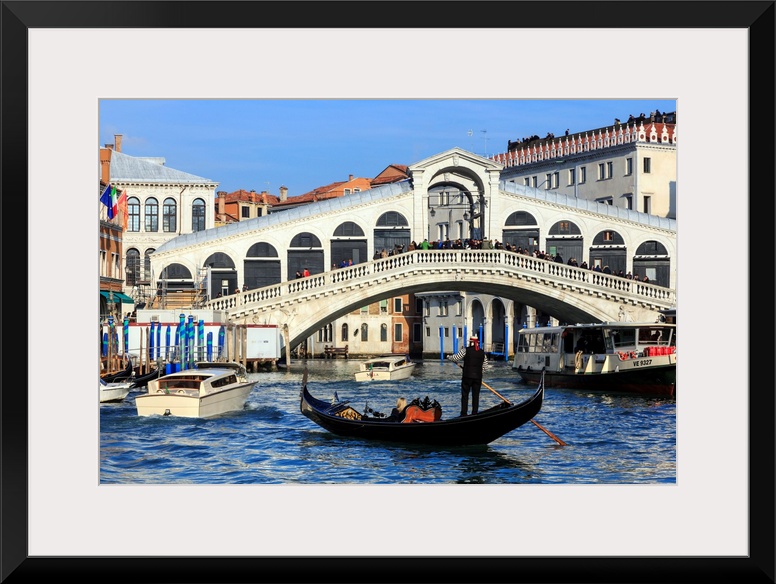 <p>Gondola on Grand Canal and Rialto Bridge in winter, Venice, Veneto, Italy</p>