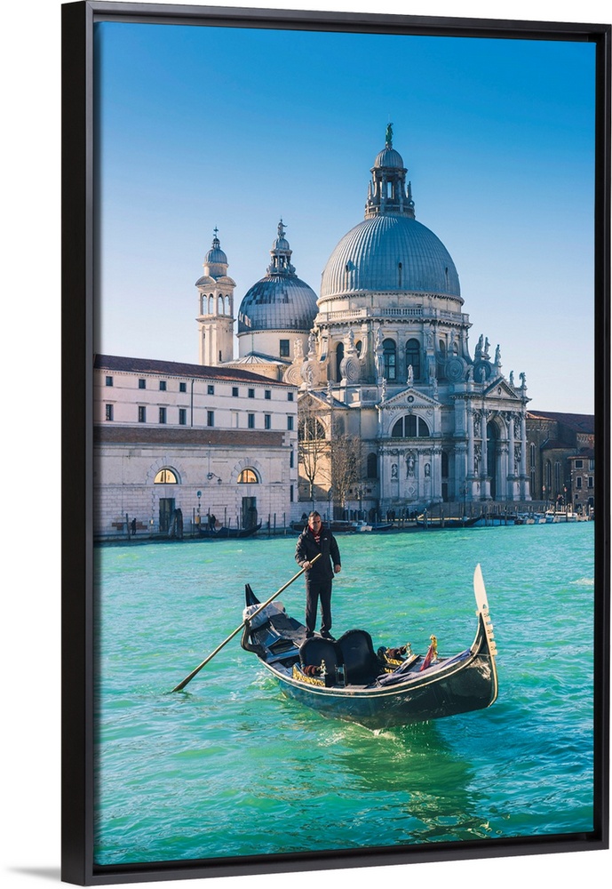 <p>Venice, Veneto, Italy. Gondola Over The Grand Canal With The Salute (St Mary Of Health) Basilica In The Background.</p>