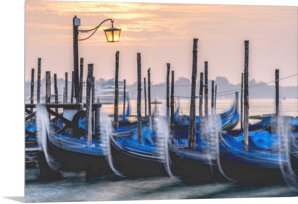 <p>Gondolas in Venice at sunrise, Venice, Veneto, Italy</p>