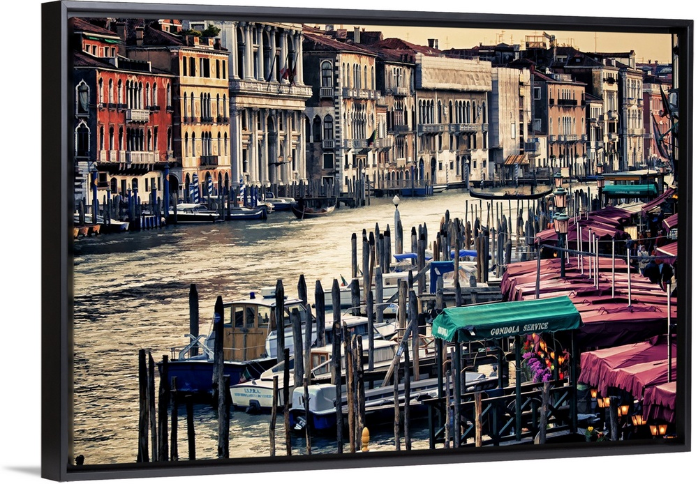 <p>Photograph of the famous gondola boats on the river in Venice, Italy.</p>