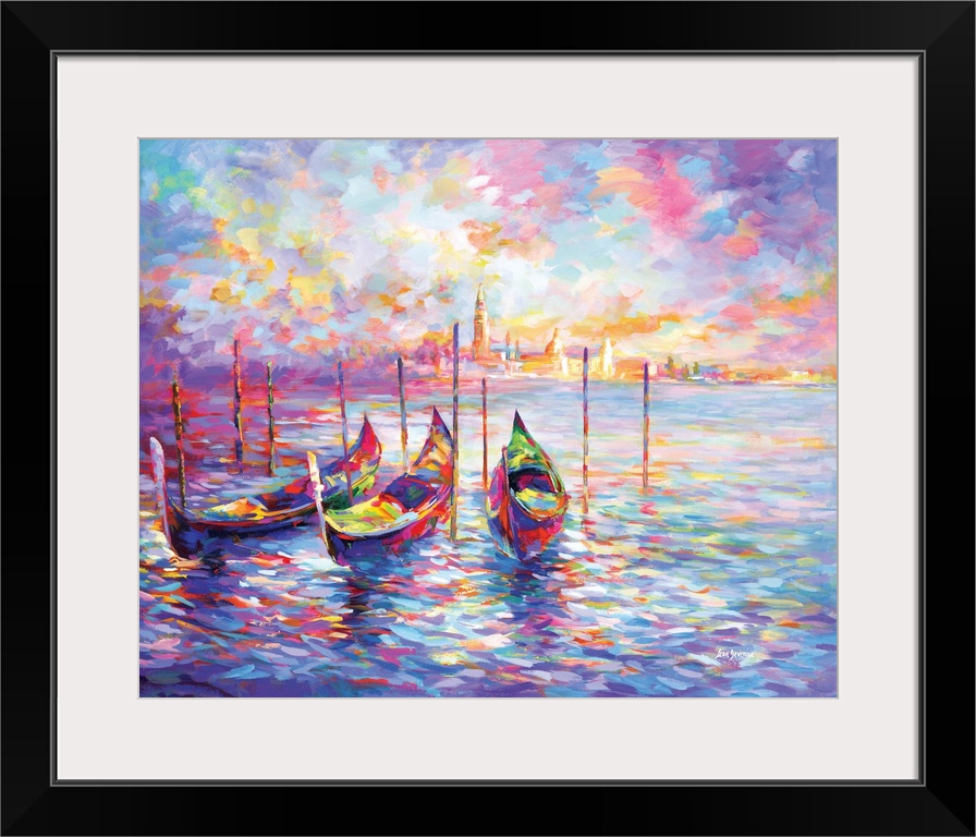 Art Contemporary Art Leon Devenice Painting Purple Wall Art Italy Venice Transportation Boat Gondola