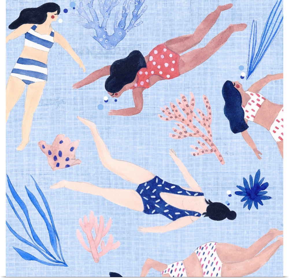 Art Coastal Children's Art Blue Wall Art Decorative Art Painting People Figurative Melissa Wang